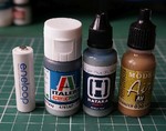 Farby Hataka. Recenzja cz.1 wstęp.Polskie farby akrylowe liczące około 221 kolorów i 41 zestawów.Buteleczki plastikowe z miękkiego tworzywa , zawartość 17ml , wysokość buteleczki 7,5 cm , średnica 2,5 cm, każda farba zaopatrzona w kulkę która ułatwia mieszanie farby.Dozowanie nie sprawia problemu, farby nie wydzielają żadnego zapachu, do rozcieńczania producent przewidział Tinner o pojemności 100ml. Thinner jest klarowny i przezroczysty, nie wpływa na rozjaśnienie koloru co ma miejsce przy Thinnerze z Italeri. Farby są rozpuszczalne w wodzie destylowanej. Ogólnie farby sprawiają dobre wrażenie, choć na pudełkach próżno szukać Polskich opisów, są tylko angielskie opisy. Na buteleczkach jest numer katalogowy, kolor, czasem nr. RAL lub RLM. Cena farb ok. 8 - 11 zł za buteleczkę.wychodzi ok. 0,50 zł za 1ml przy Italeri 0,41 zł/ml , Pactra 0,45 zł/ml , Vallejo 0,51 zł/ml Gunze akryl 0,92 zł/ml TAMIYA 0,41 zł/ml.Jak widać Hataka w znajduje się w środku stawki. Farby są robione w Polsce, nie są tylko rozlewane w Polsce ale robione, są
